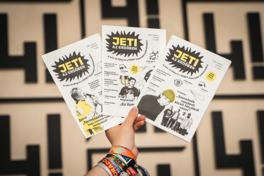 we partnered with 444.hu to create a print newspaper for kolorádó festival. since there’s no mobile reception on site, we figured out a way to keep serving news and more to the people of kolorádó. we made a daily print magazine for all three days of the festival. it featured interviews, program recommendations, and lots of content created during the festival—much of it by the festival goers. hurrikan press handled the printing and set up a pop-up print studio in our mobile editorial bungalow. we produced 300 copies each day for the 3-day festival.